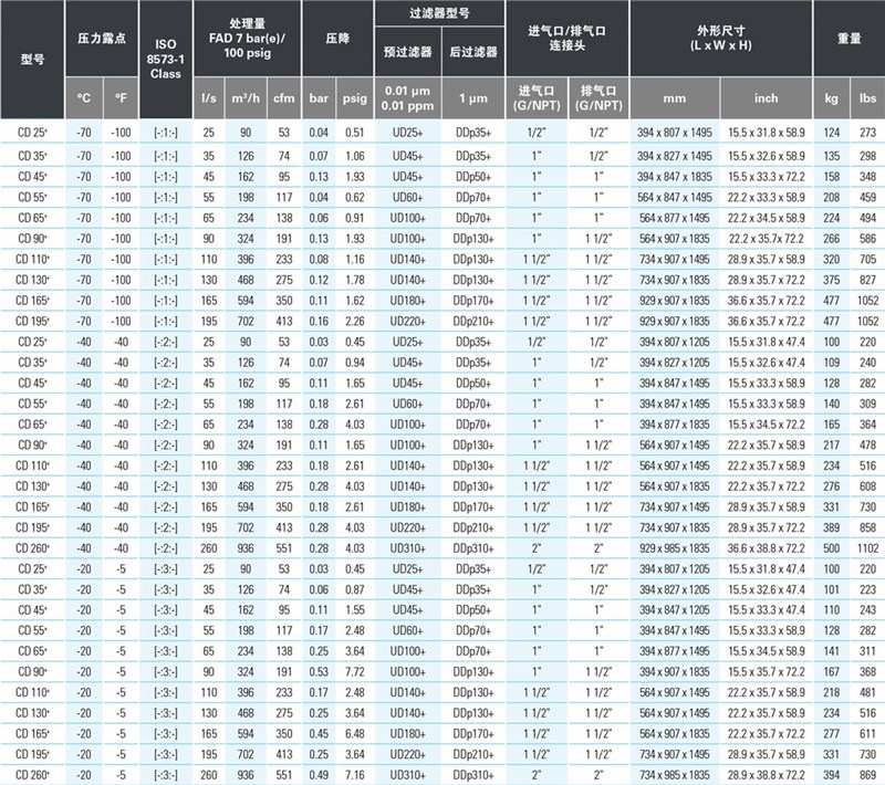 完整的雙塔式吸附式空氣干燥機和轉鼓干燥機系列,適合各種工業應用場合。