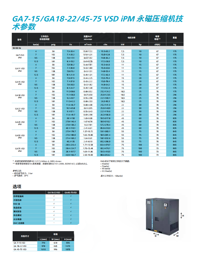 阿特拉斯·科普柯的GA7-15/GA18-22/45-75VSD永磁變頻壓縮機精巧的驅動和智能控制讓其擁有出色的可靠性和效率。該系列是采用了內(nèi)置永磁電機(iPM)和壓縮機專用變頻器的變轉速驅動壓縮機。GA7-15/GA18-22/45-75 VSD比定頻機型平均節(jié)能35%*,為空壓機行業(yè)樹立了成本節(jié)約與穩(wěn)定性能的新標桿。